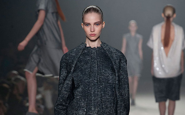 Alexander Wang, 2013 sonbahar-kış koleksiyonunda sizi kat kat giydirmeye hevesli. Kalın örgülerin, derilen ve tüylerin öne çıktığı koleksiyon gri, siyah ve kahve tonlarıyla ciddiyetinden ödün vermiyor.