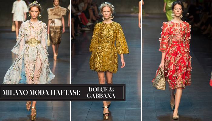 Anna Della Russo, Ulyana Sergeenko ve Bianca Balti’nin en ön sıradan izlediği Dolce&Gabanna defilesinde Sicilya’nın tarihinde ufak bir yolculuğa çıkıyoruz. Woody Allen filmlerini anımsatan müzik ve atmosferin eşliğinde podyuma adım atan modeller, üç boyutlu çiçek işlemeli tasarımların yanı sıra antik yıkıntıların basılı olduğu elbise ve kıyafetlerle karşılıyor bizi.