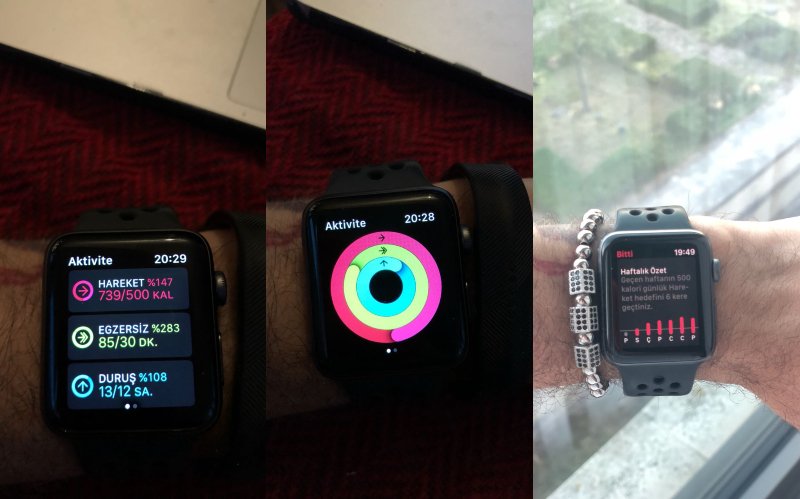 Genelde aktivite halkalar?na da çok dikkat etmiyorum. Antreman halkalar?, günde iki çal??mada kapanabiliyor. Bir antreman zaman? ikiden fazla çal??ma oluyor, günde an az 20.000 ad?m at?yorum, dinlenme günleri de bu say? zaten çok dü?üyor, o yüzden dinlenme günleri de aktivite halkalar? kapanm?yor. Ama genelde esas olarak halka kapan?yor tabii. Bu aktivite halkalar?, profesyonel olarak sporla u?ra?mayan insanlar için hesaplan?yor, o yüzden bizler için biraz az geliyor.