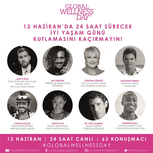Global Wellness Day bu yıl bir ilke imza atarak, alanında uzman dünyaca ünlü 63 konuşmacıyla 13 Haziran Cumartesi 24 saat sürecek canlı yayınına davet ediyor.