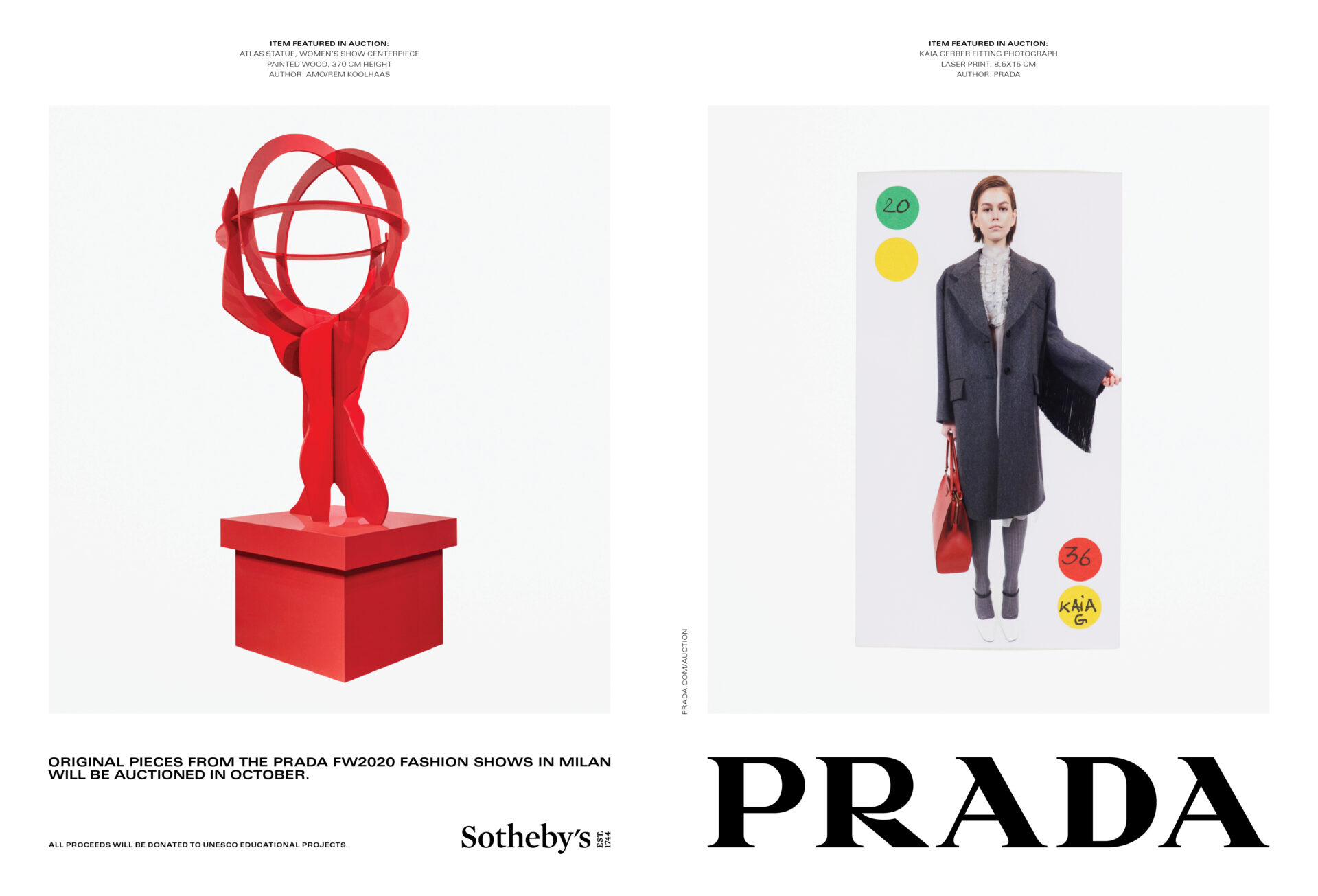 Prada’nin Sotheby’s ile UNESCO yararına gerçekleştirdiği online açık artırma 2 Ekim tarihinde başladı ve 15 Ekim 2020 tarihine dek sürecek.