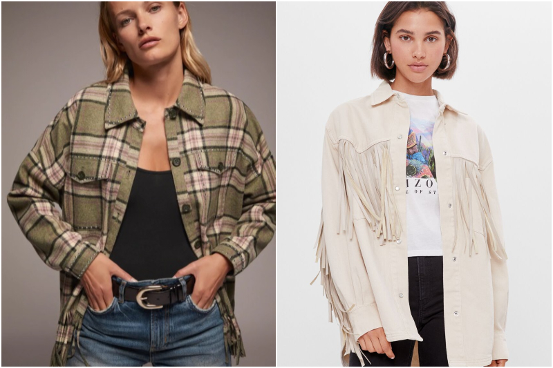 Boru paça ya da flare paça jean pantolonlar ve babetler de gömlek ceketlere bambaşka bir hava katıyor. Özellikle flare paça tercih ediyorsanız püsküllü ceket modelleri western stilinizin eşsiz tamamlayıcıları olacak.