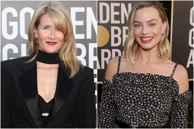 Margot Robbie ve Laura Dern benzer makyaj görünümleriyle dikkat çekiyor. Işıltılı yanaklara ve bordo ruja odaklanan makyajlarında her iki yıldız da oldukça zarif görünüyor.