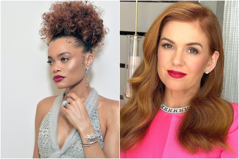Andra Day, kendisinde sık sık gördüğümüz bebek saçlarını ön plana çıkaran havalı bir saç modeli tercih etti. Dudaklarında ise bordo ombre makyaj öne çıktı. Isla Fisher makyajında canlı kırmızıdan güç aldı.