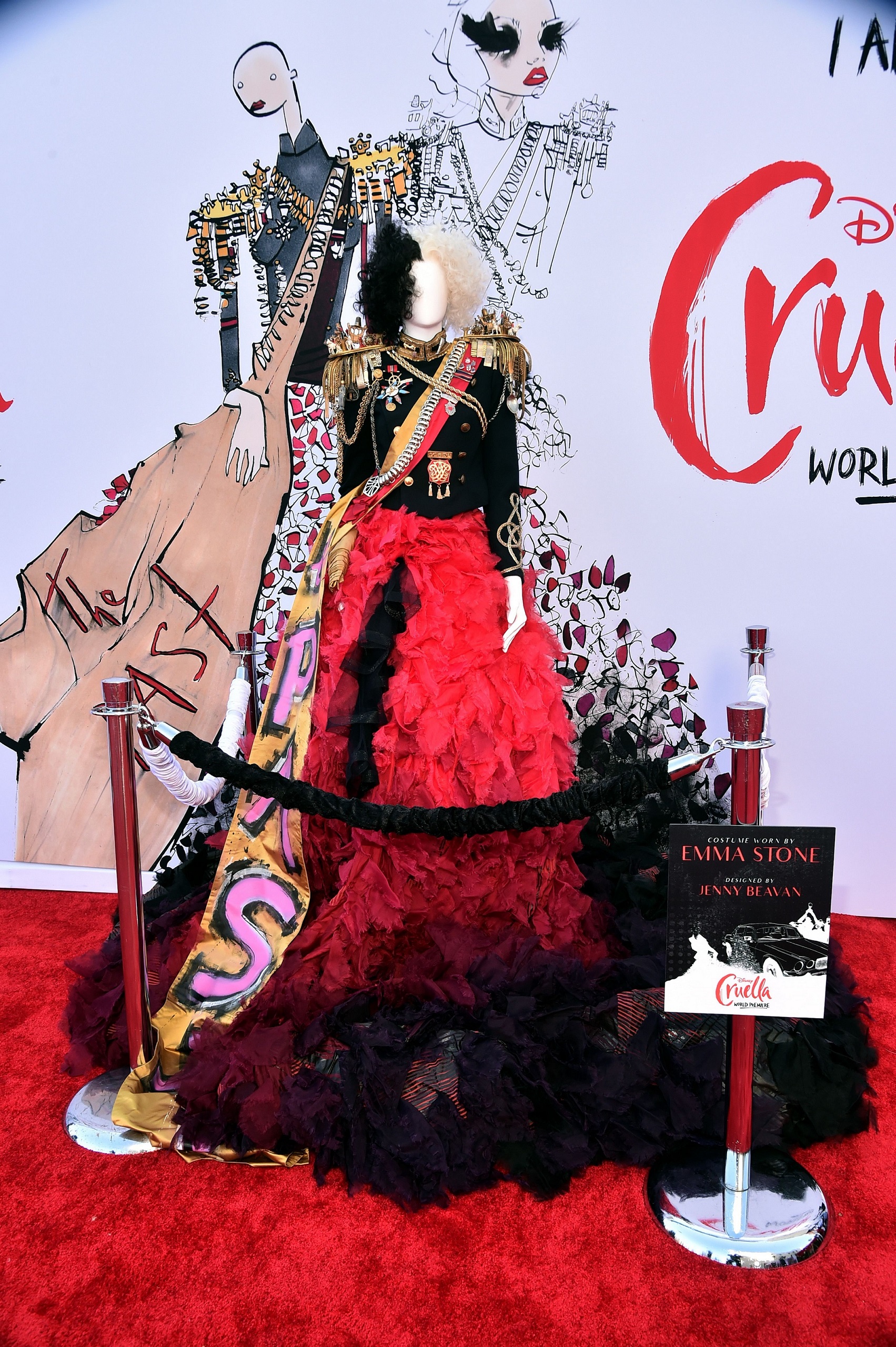 Estella’nın 12 yaşında şahit olduğu Barones’in Marie Antoinette balosu, Siyah-Beyaz Balosu (Cruella’nın Artie’nin ikinci el dükkanından aldığı kan kırmızısı bir elbiseyle ve bilgisayar çizimi olan yanan beyaz pelerinle görüldüğü yer) ve Estella’nın tüm konuklara siyah elbiseler ve siyah beyaz peruklar gönderdiği Gala sahnelerindeki Beavan ve ekibinin tasarladığı kostümler, detaylarıyla Cruella’yı ikonik ve modern bir görünüme kavuşturuyor.