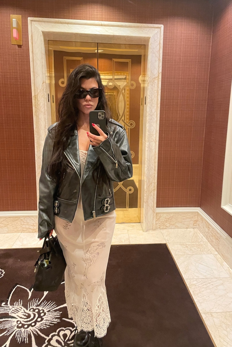 Bu aralar Travis Barker ile çıkan Kourtney Kardashian, bu taktikleri son dönemde sıkça uygulayan isimlerden. Feminen bir ipek ve dantel elbisenin üzerine giydiği büyük boy deri ceket gibi.
