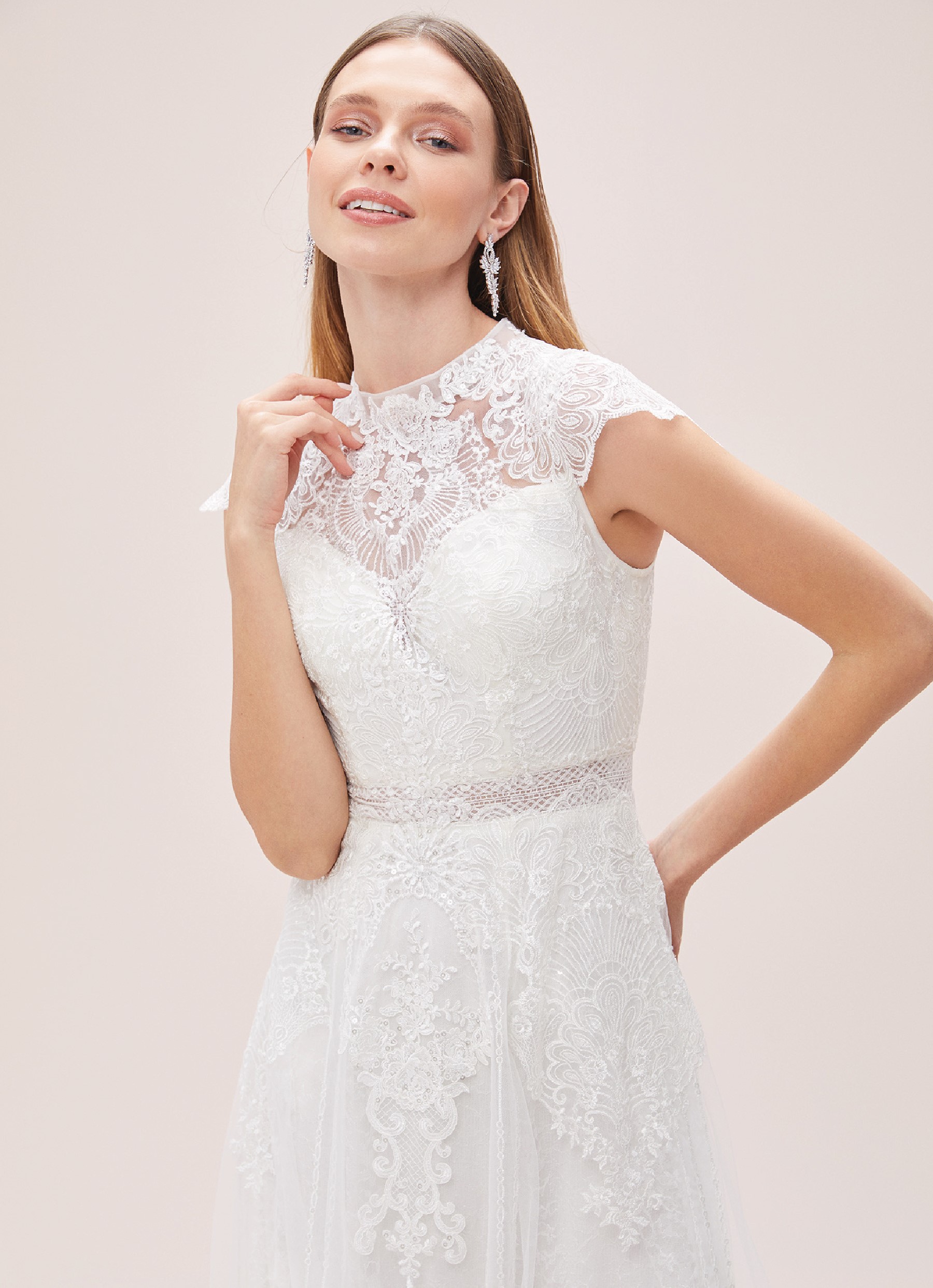 Kendinden emin ve sofistike bir duruş sergileyen yüksek yakalar, özellikle dantel gelinliklerde ön plana çıkıyor. 1920’li yılları günümüze taşıyan uzun kollu, dik yakalı gelinlikler özellikle 2020 sonbahar kış gelinlerine hitap ediyor. Dik yakanın yarattığı kraliyet havası ve danteller sizi geçmişten günümüze bitmeyen ezgilerin olduğu özel bir dansa davet ediyor.