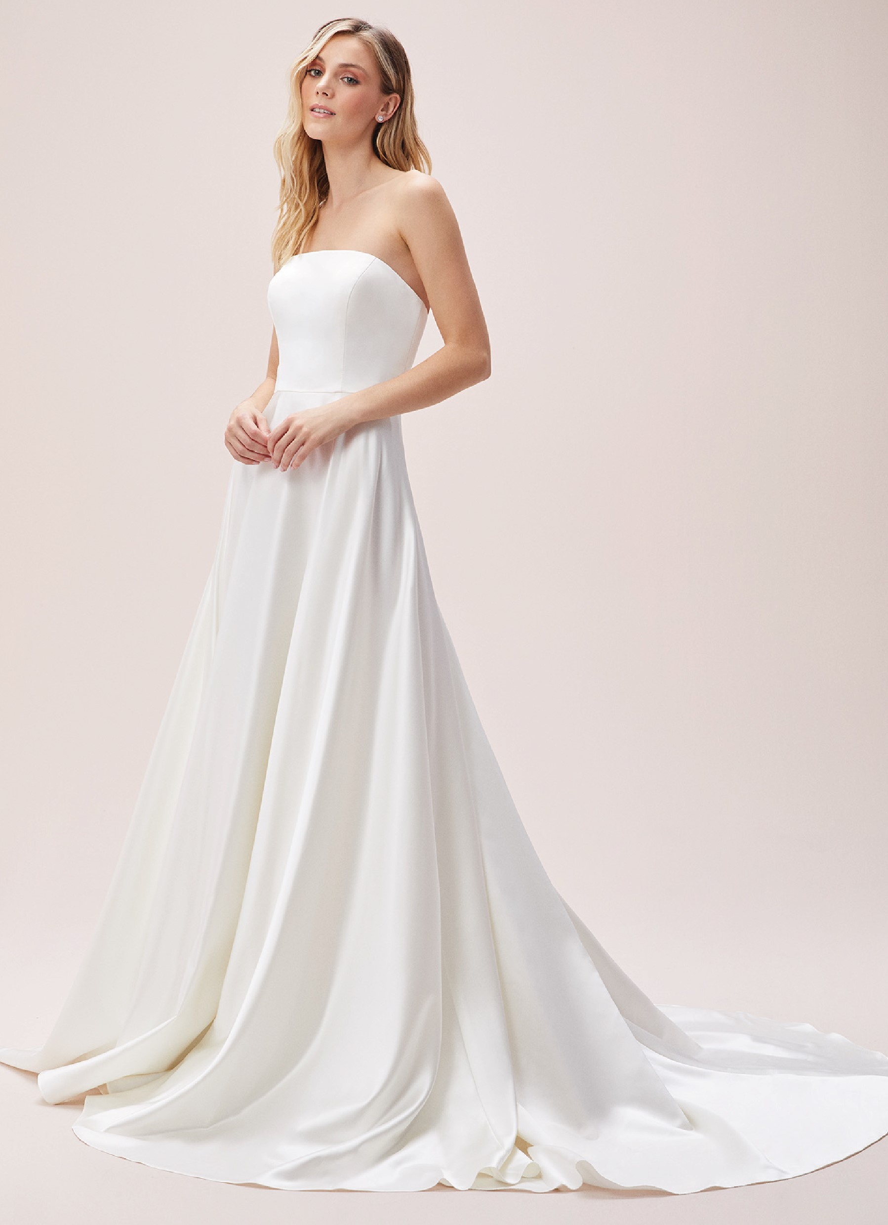 Baştan aşağıya saten kumaştan tasarlanmış prenses ya da balık kesim bir gelinlik, asil olduğu kadar gösterişli bir duruş sergilerken; sıra dışı olduğu kadar klasikleri seven iddialı gelin adayları için de iyi bir çözüm olmaya aday.