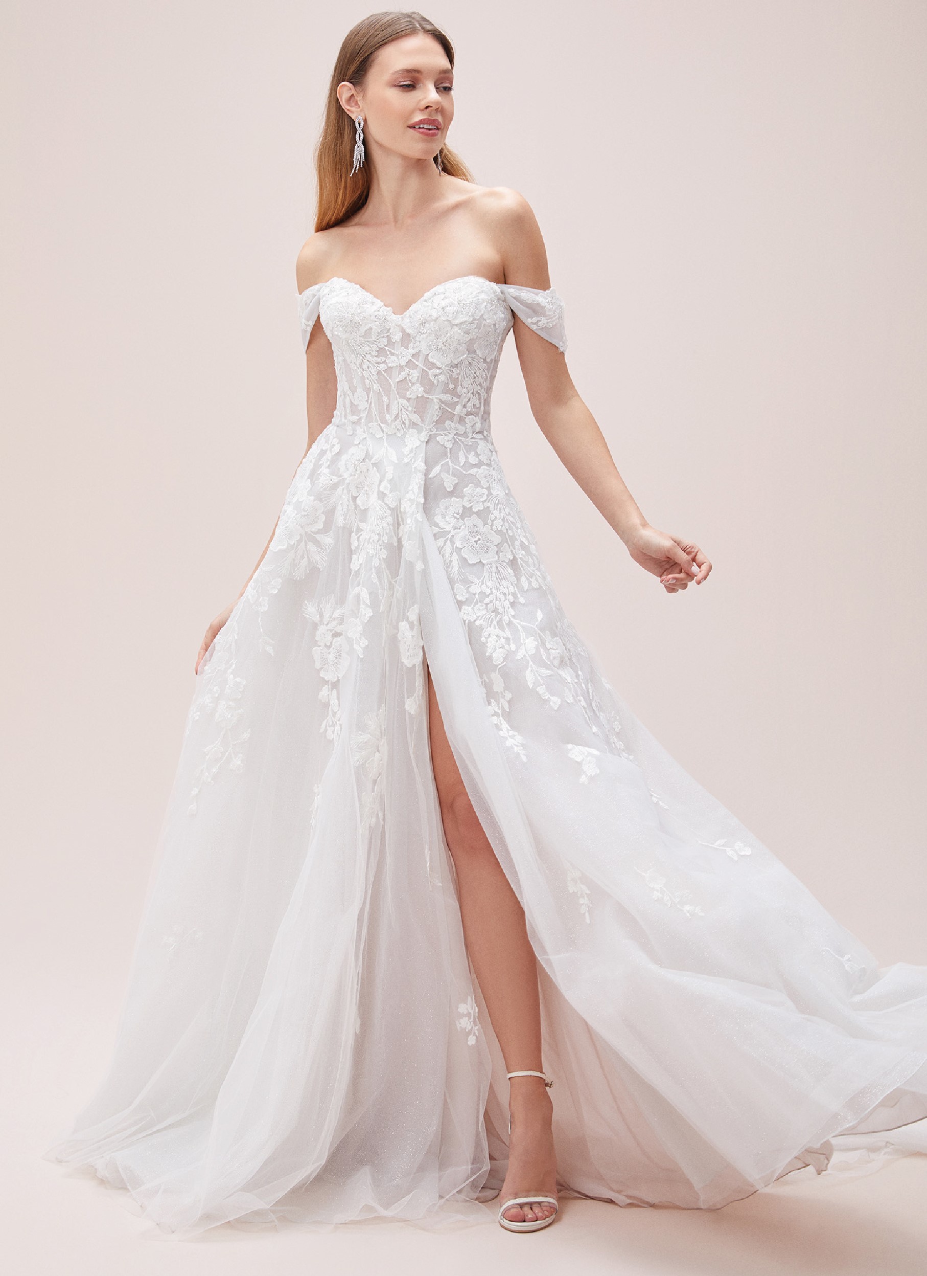 Tüm gelinliği saran ışıltılı tüllere hazır olun! Parlak işlemeli danteller ile birleştirilen ışıltılı tüller, üzerindeki tüm ışığı saçan kristal gelinleri oluşturuyor. Kendinden ışıltılı kumaşların özenle kullanıldığı gelinliklerde ince askı seçimleriyle romantik bir etki yaratılırken, 2020’nin önde gelen trendi, kristal etkisi es geçilmiyor. Simli kumaşlar ve ışıltılı taşlar ile zenginleştirilmiş A kesim gelinlikler göz alıcı bir ışıltı vadediyor.