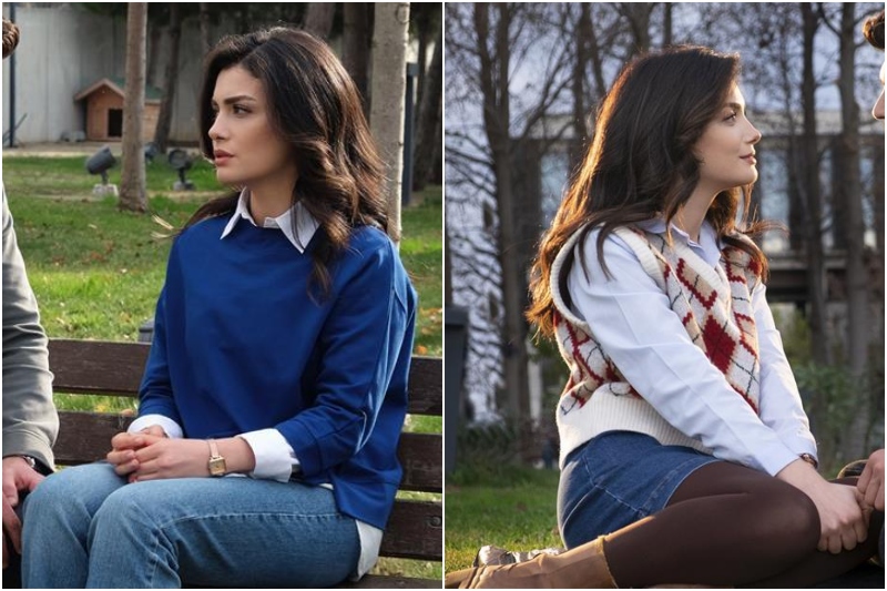 Dizinin renkli kombinlere imza atan bir diğer karakteri de Zeynep. Zeynep özellikle de renk renk ceketleriyle dikkat çekiyor. Blazer ceketlerin yanı sıra ceket görünümlü oversize gömlekler de Zeynep’in favorilerinden.