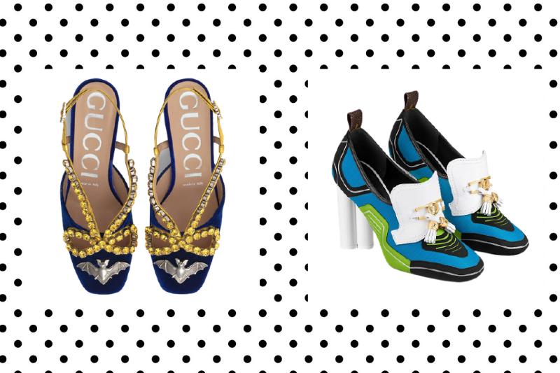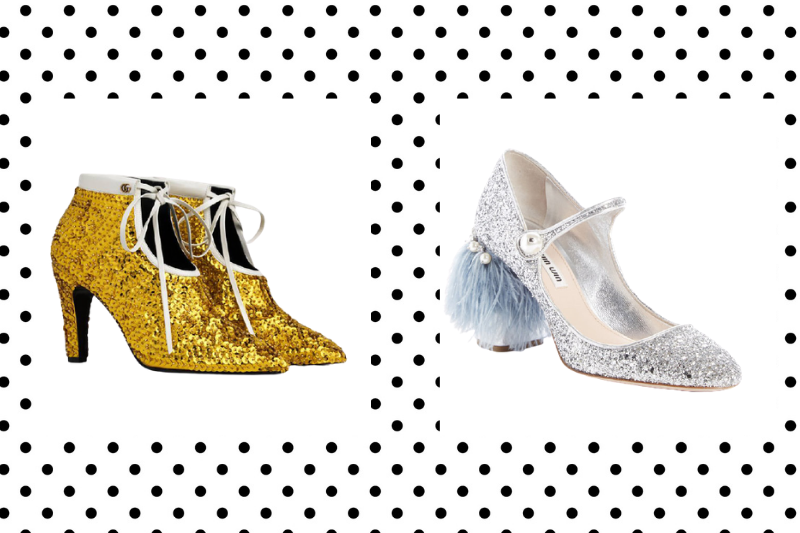 Miu Miu‘nun blok topuklu Mary Jane modeli ise, glitter dokusu, inciler ve tüyle desteklenmiş topuğuyla adeta masallardan esinlenmiş gibi görünüyor.