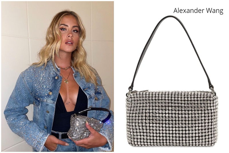 Valentina Ferragni taş işlemeli kot ceketini Alexander Wang taşlı çantasıyla tamamlayarak bu trendi ne kadar sevdiğini adeta gözler önüne seriyor. Uzun yıllardır abiye çanta olarak düşünülen taşlı çantaları spor parçalarla tamamladığınızda güne şık ve abartıdan uzak bir adım atabilirsiniz.