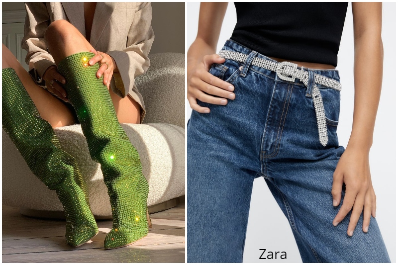 Dikkat çekici stiliyle tanıdığımız influencer Leonie Hanne yeşil taşlı uzun çizmeleriyle bu trendi uygulamaya başladı bile! Ayakkabıdan kemerlere, küpelerden çantalara taşlı parçalar gardırobunuzu domine etmeye geliyor.