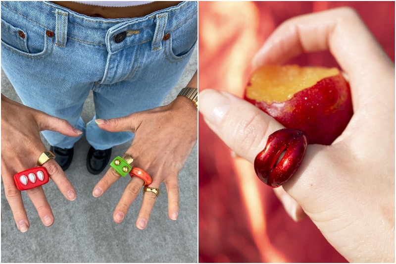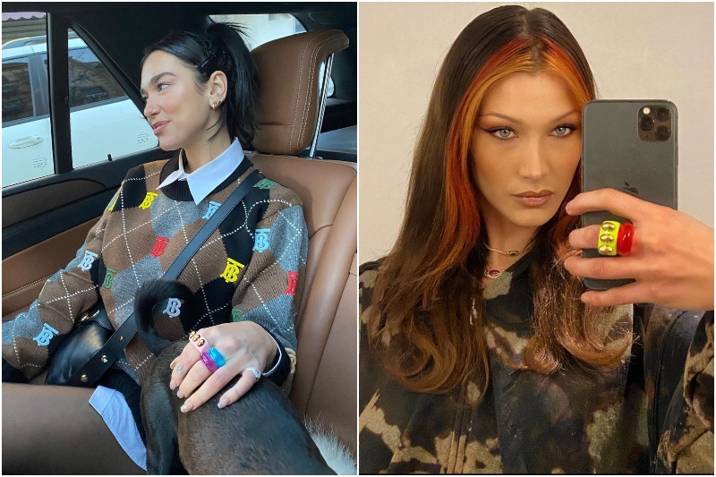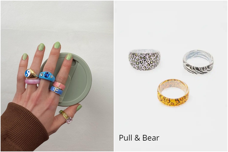 Takı kullanmayı seviyorsanız bu sezon rengarenk seçeneklere hazır olun. Minimal takı tutkunlarının biraz daha mesafeli yaklaşabileceği bu trend bizleri 90’ların sonuna ve 2000’lere götürüyor. Dua Lipa, Miley Cyrus ve Bella Hadid gibi isimlerin de karşı koyamadığı bu trendde polimer kil, plastik, cam ve seramik gibi materyallerden yapılan renkli ve büyük yüzükler pop kültürün adeta bir yansıması olarak karşımıza çıkıyor.