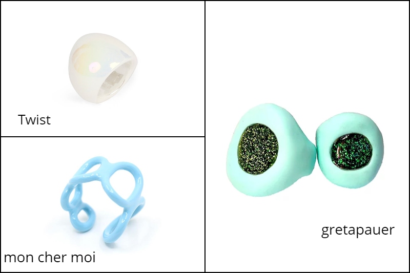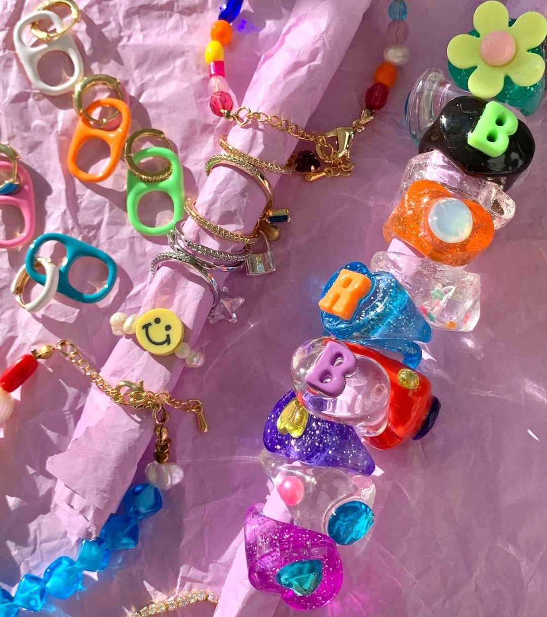 Yüzükleriniz kare, oval, yuvarlak, çiçek, kalp gibi dilediğiniz formlarda olabilir. Ne kadar çılgın, o kadar havalı! Bu trendi, bir diğer takı trendi olan jelibon tasarımlı kolye, küpe ve bilekliklerle tamamlamayı deneyin!
