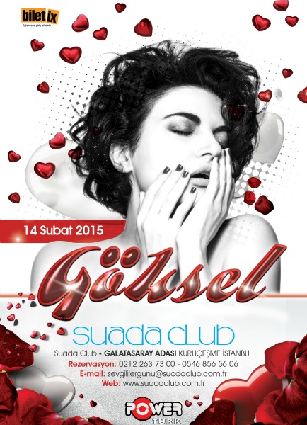 Dünya çapında pek çok organizasyona ev sahipliği yapan, yerli ve yabancı misafirlerini dört mevsim, değişik konseptlerde ağırlayan Suada Club-GS ADASI; yılın en romantik gecesi 14 Şubat Sevgililer Günü’nde tüm romantik çiftlere Göksel ile unutulmayacak bir gece vaat ediyor.