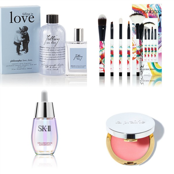 SK-II Cellumination Aura Bright, $235, sk-ii.com; La Prairie Cellular Radiance Cream Blush in Rose Glow, $70, nordstrom.com; Smashbox Art. Love. Color. Brushes, $49, smashbox.com; Philosophy Falling In Love Fragrance, $48, ulta.com.