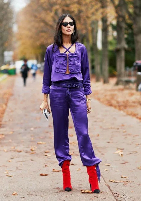 Mor Pantone 2018 yılının rengi olarak moru ilan ettiğine göre, sokak stilinde de görmeye şaşırmayacağımız kesin bilgi olsa gerek. Cesur bir görünüm için morun yanına kırmızıyı da eklemeyi unutmayın!