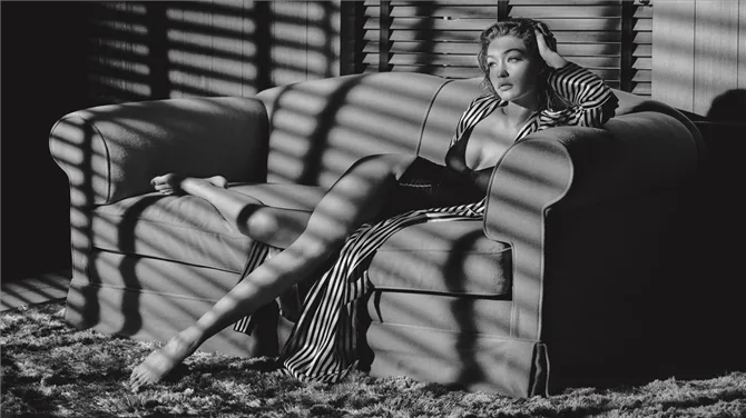 Watson’un aç?klamas?na göre, bunun bir örne?i Gigi Hadid‘in canland?rd??? karakter. Yak?n zamanda partnerinden ayr?lan bu kad?n, cam bir kulede yaln?z ya??yor, tek yak?n arkada?? ve s?rda?? da Alexander Wang: “Bu resimlerde bir ölçüde endi?e var bence. Hadid’in karakteri ile gelece?ini dü?ünen bir kad?n hissini aktarmak ve bir yandan da yaln?zl?k durumunda göstermek istedim. Onu hayatta nereye gidece?ini, yar?n ne yapaca??n? dü?ünürken görüyoruz. Foto?raflad???m di?er kad?nlardan ve ortamlardan çok daha minimal olmas?n? istedim.”