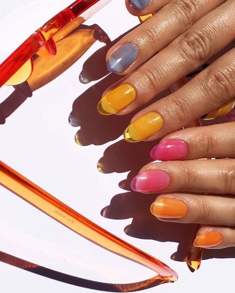 Yar? saydam görünümdeki akrilikten yap?lm?? jel ojeler ile 2018’de tan??t?k. Bu trendi 2019’da daha renkli ve daha saydam ?ekilde görece?iz. @jessicawashick @unistella_kr
