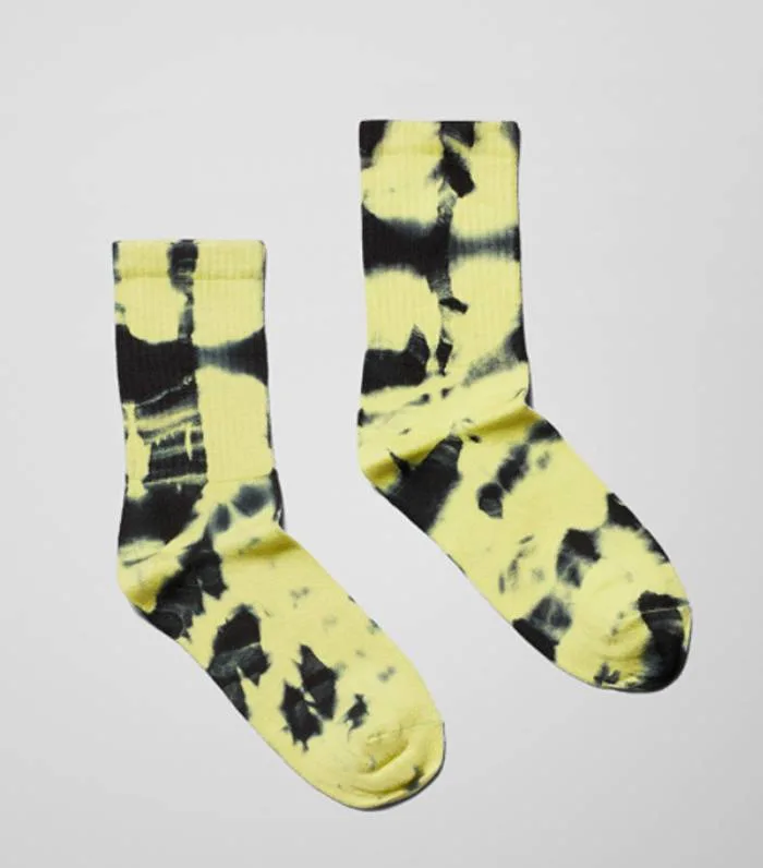 Aslında bu trendin mikrodan ziyade dev bir sezon hitine dönüşmeye başladığını söyleyebiliriz. Siz de evde kendi çoraplarınızı batik boyasıyla bu hale getirebilirsiniz.