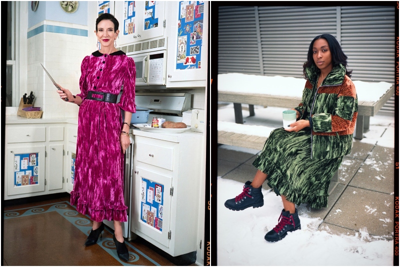 Herhangi bir kadife türü değil, ezilmiş kadife ile tanışın. Sonbahar 2021 şovlarında sıkça gördüğümüz bu doku; 90’ların sonlarına atfedilebilecek bir kumaş. Bu sezon Batsheva’da özel elbiselere, Collina Strada’da yakalı paltolara ve çok daha fazlasına farklı bir hava katıyor.