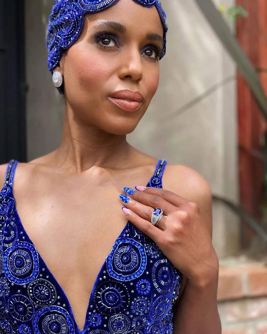Kerry Washington, etkinliğe deniz kızı temasıyla katılmayı seçti. Bunun için de suya dayanıklı bir makyaj elbette vazgeçilmezdi. Kostümüyle aynı tonlarda mermaid ışıltılarda göz farını, kahverengi ruj ve yoğun bronzer ile tamamlamayı seçti. Manikürü ise kıyafetinin adeta bir tamamlayıcısıydı.