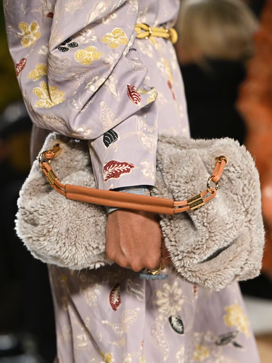 Kombinlerimizi baştan aşağıya esir alan peluş detaylar, aksesuar seçimimize de yön vermeye kararlı. Peluş bir manto ile uyum içinde görünen bu çantalar, Chanel ve Loewe’nin yakın markajında.
