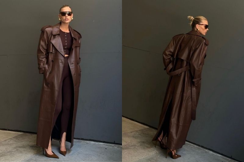 Deri kabanlar çoğunlukla siyah, haki ve deve tüyü renkleri ile öne çıkarken, yakın zamanda koyu kahve rengini de ünlü model Elsa Hosk’un üzerinde gördük. Kabanıyla göz dolduran Hosk, kombinini yine aynı renk bir takım, gözlük ve topuklu ayakkabı ile tamamladı.