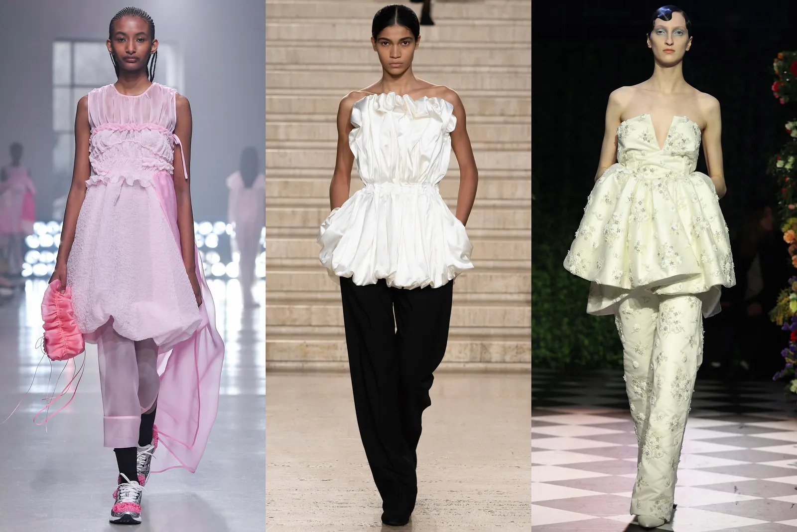 Biliyorsunuz ki peplum, ceket, etek, bluz ya da elbiselerdeki genellikle bel hizasında yer alan fırfırlı görünüme denir. Özellikle 50’li yıllarda moda dünyasındaki zirvesini yaşayan peplum görünümler, 2023-24 sonbahar/kış sezonuyla görünümlerinize konuk olmaya hazırlanıyor. Nostaljik fakat bir o kadar da modern olan bu trend, şık bir davete katılırken kesinlikle tercih edeceğiniz parçaların başında.