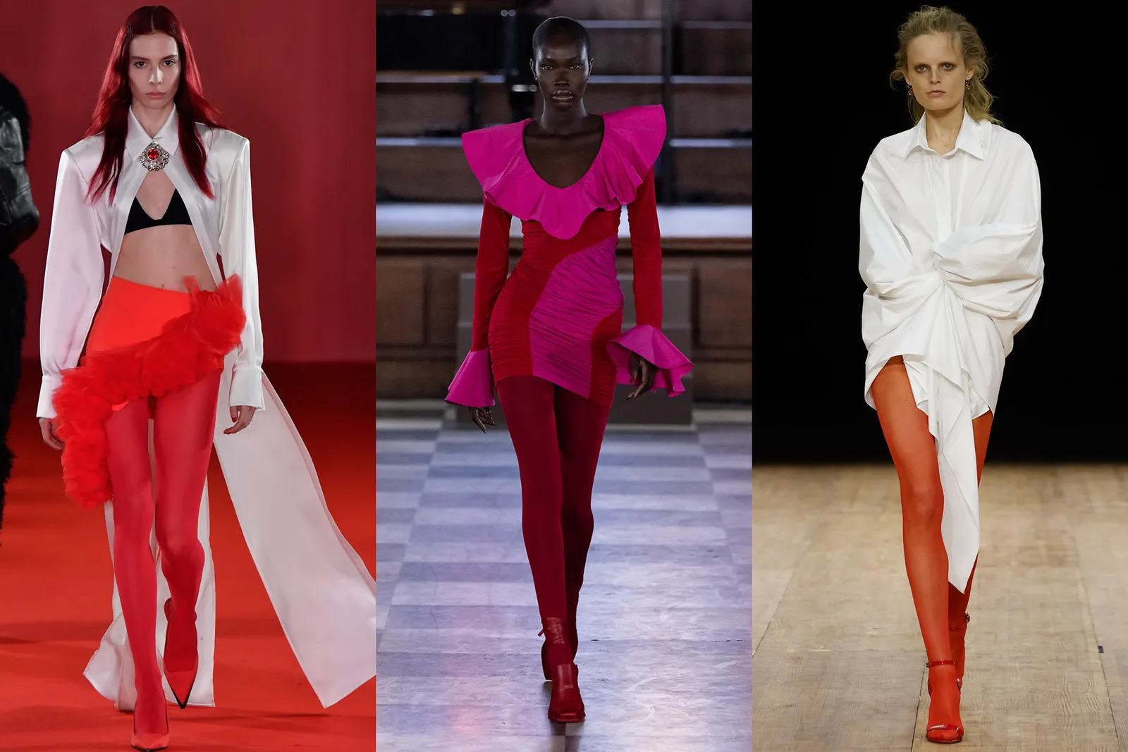 David Koma ve Coperni gibi modaevlerinin podyumlarında özgüvenle sergilenen bu görünümler genelde kırmızı taytlar ile eşleştirilse de, bu konuda bir sınırınızın olmadığını bilmeniz önemli. İster mavi, ister pembe, isterseniz de yeşil, karar sizin.