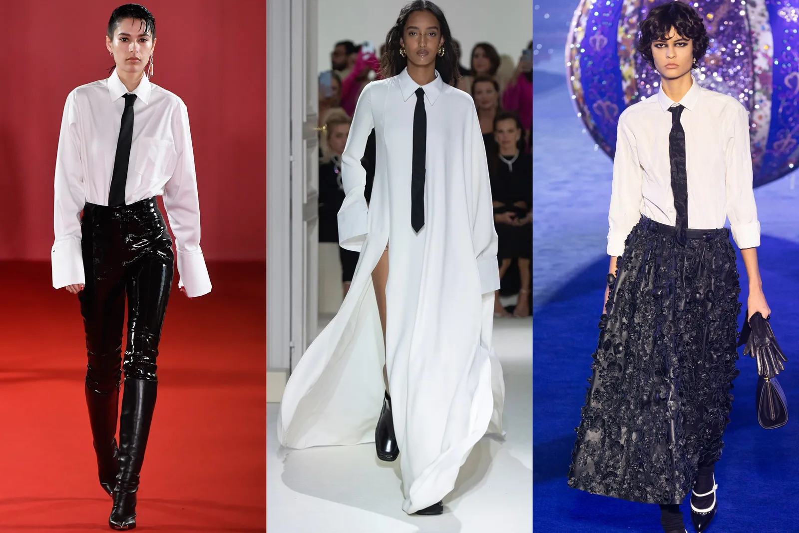 Okul gömleklerini anımsatan beyaz bir gömleği ve tek renk kravatı uygun altlarla eşleştirdiğinizde cesur bir görünüm elde edeceğinizin garantisini verebiliriz. Aman dikkat, gömlek ve kravat aracılığıyla yapacağınız ihtişamlı kombinlerle müdireye yakalanmayın!
