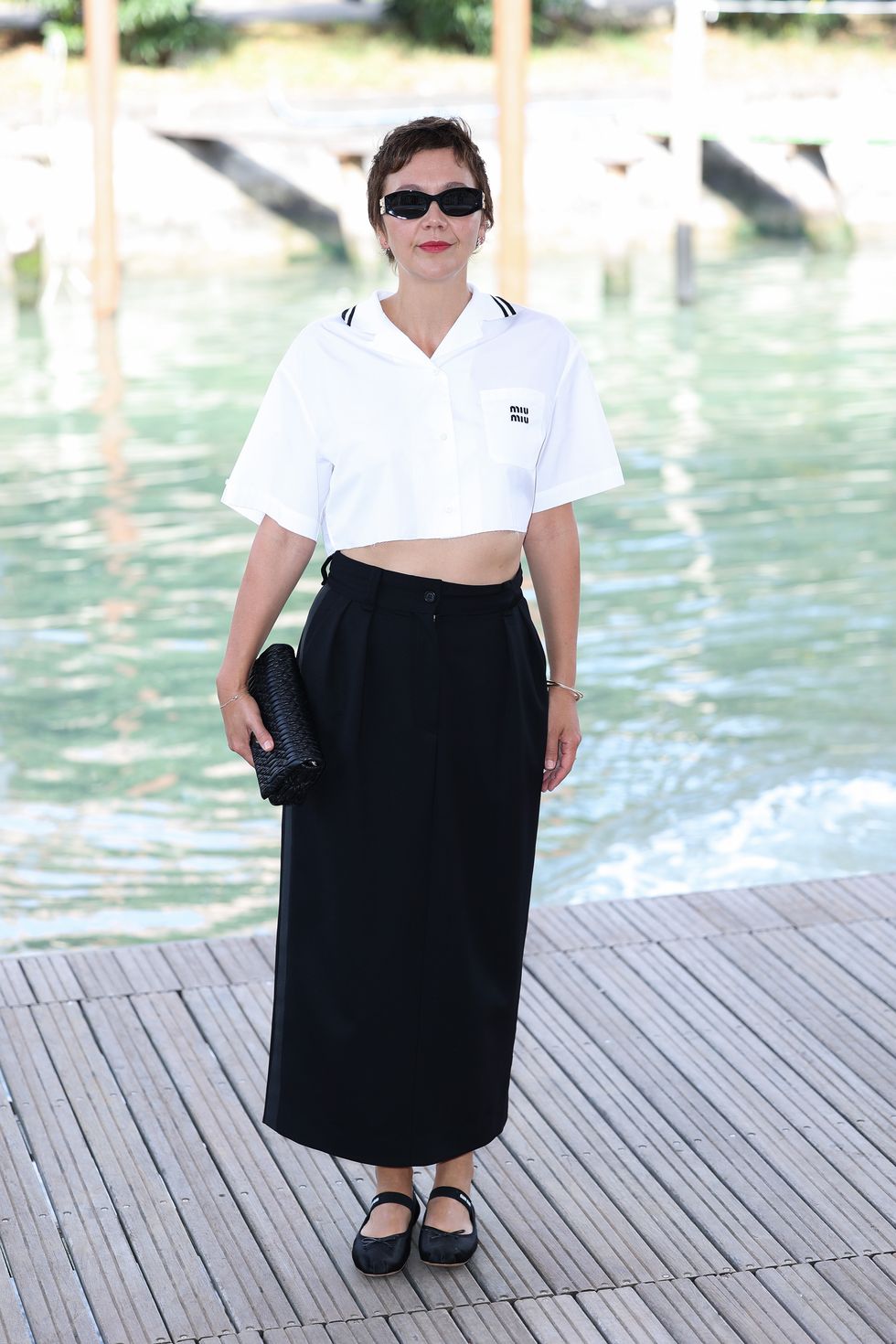 Miu Miu imzalı bir başka kombin ise ünlü oyuncu Maggie Gyllenhall’dan geliyor.