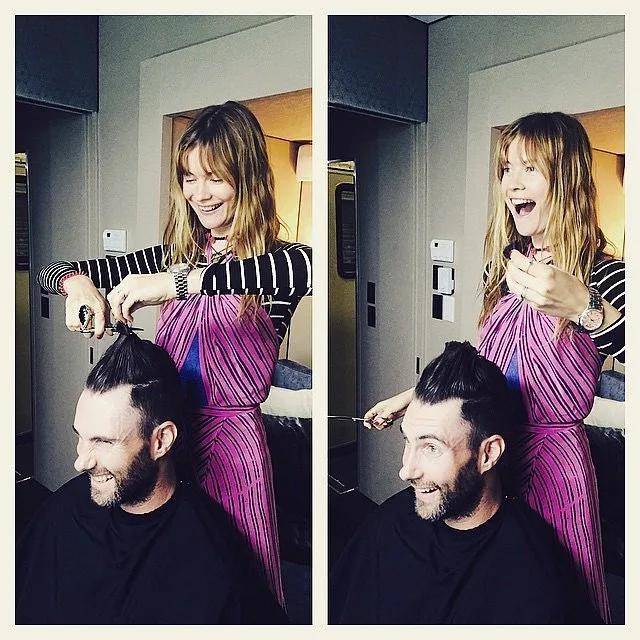 Behati-captured-cute-moment-her-giving-Adam-haircut
