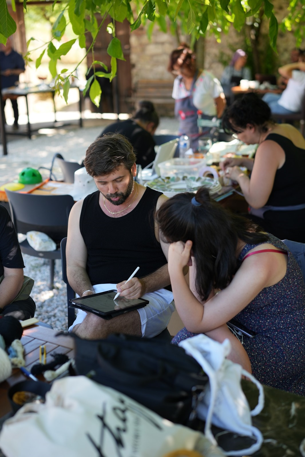 Sanatçıların sohbetlerini derinleştirdiği, düşünce ve pratiklerini paylaştığı çalıştay sırasında Özlem Varol’un düzenlediği çini atölyesi de farklı sanat anlayışlarına sahip isimleri yeni deneyimlerde buluşturdu.