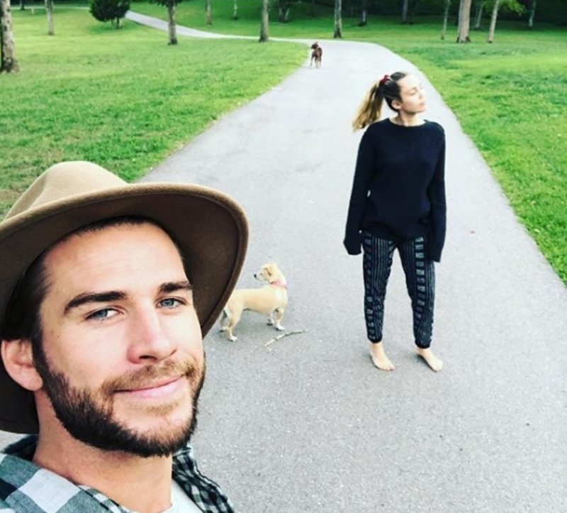 Liam Hemsworth- Miley Cyrus çifti de köpekleriyle eğlenceli yürüyüşlere çıkıyorlar.