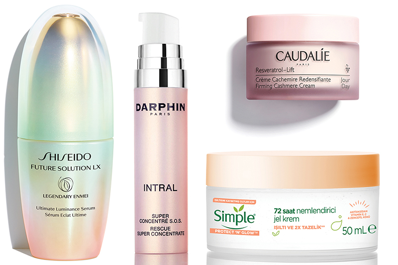 SHISEIDO, Future Solution LX Legendary Enmei Ultimate Luminance Serum // DARPHIN, Intral Super Serum // CAUDALÍE,