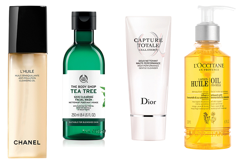 CHANEL, L’Huile Kirlilik Karşıtı Temizleme Yağı // THE BODY SHOP, Çay Ağacı Yüz Yıkama Jeli // DIOR, Capture Totale C.E.L.L. ENERGY Gentle Cleanser // L’OCCITANE, Infusions Temizleme Yağı