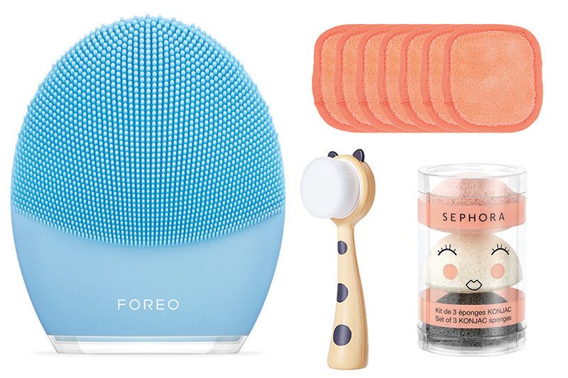 FOREO, Luna 3 // MAKE UP ERASER, 7 Days Fishing Kit // MINISO, Yüz Temizleme Fırçası // SEPHORA,Üçlü Konjac Sünger Seti