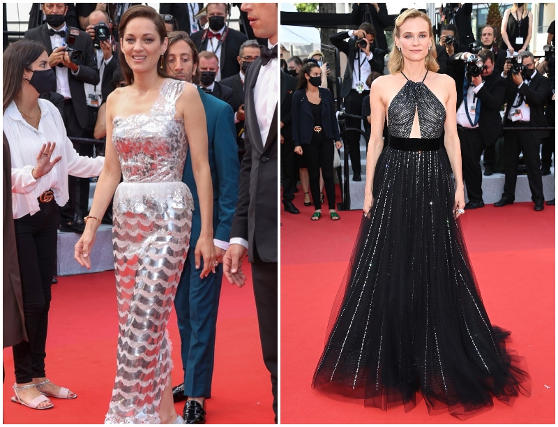 Marion Cotillard, Chanel Haute Couture elbisesiyle gümüş ışıltılarını yansıtmayı tercih ediyor. Diane Kruger‘ın gümüş sim şeritler içeren siyah elbisesi ise Giorgio Armani tasarımı.