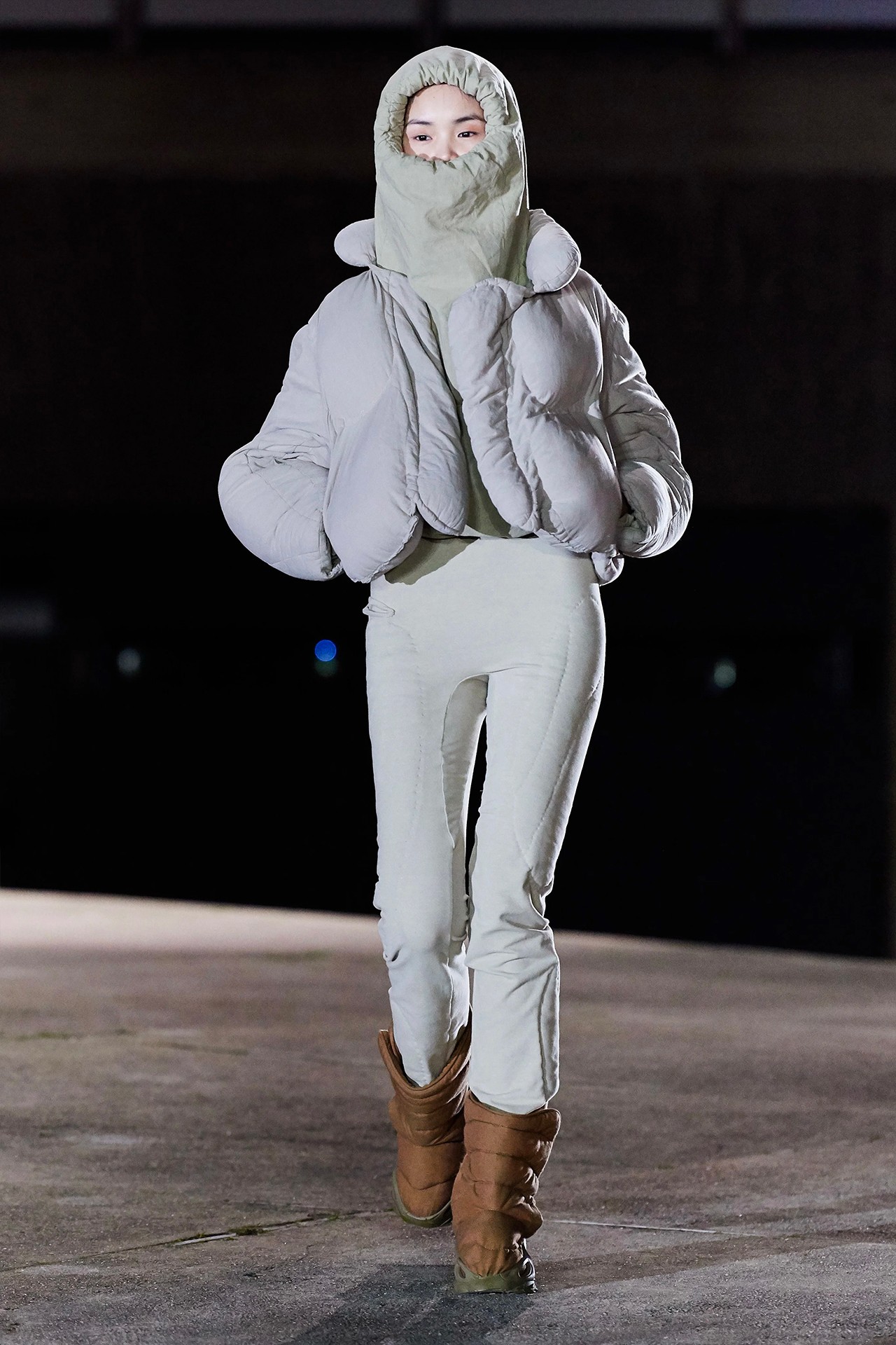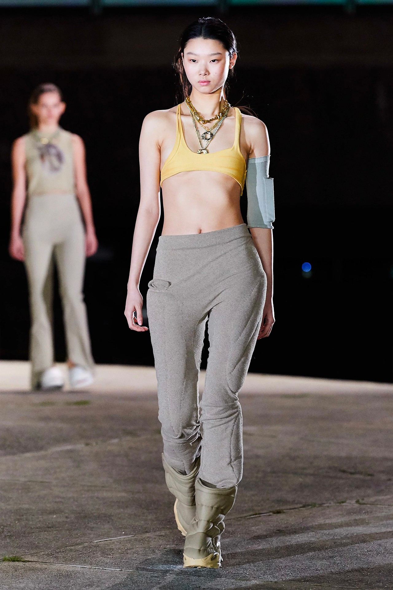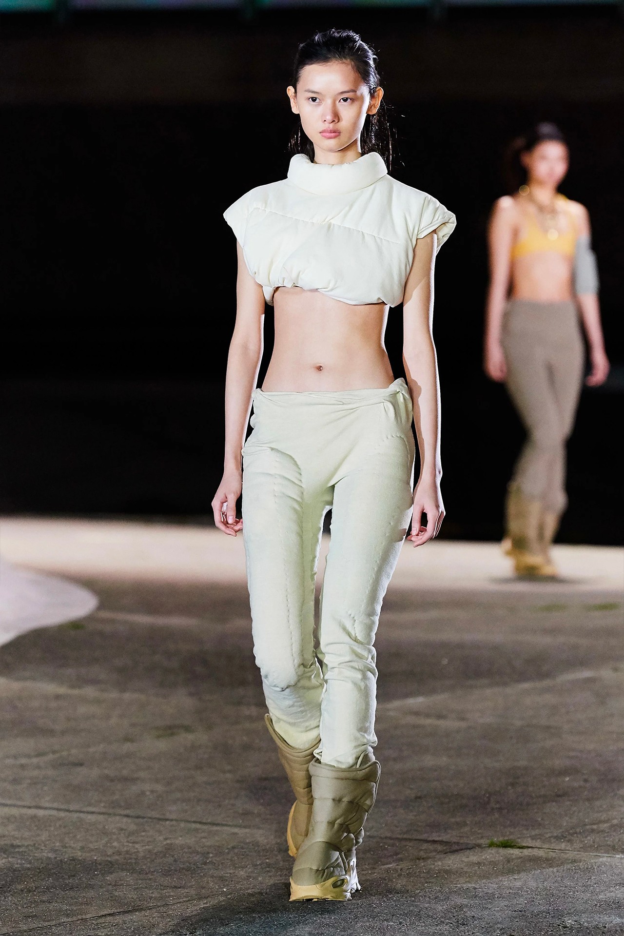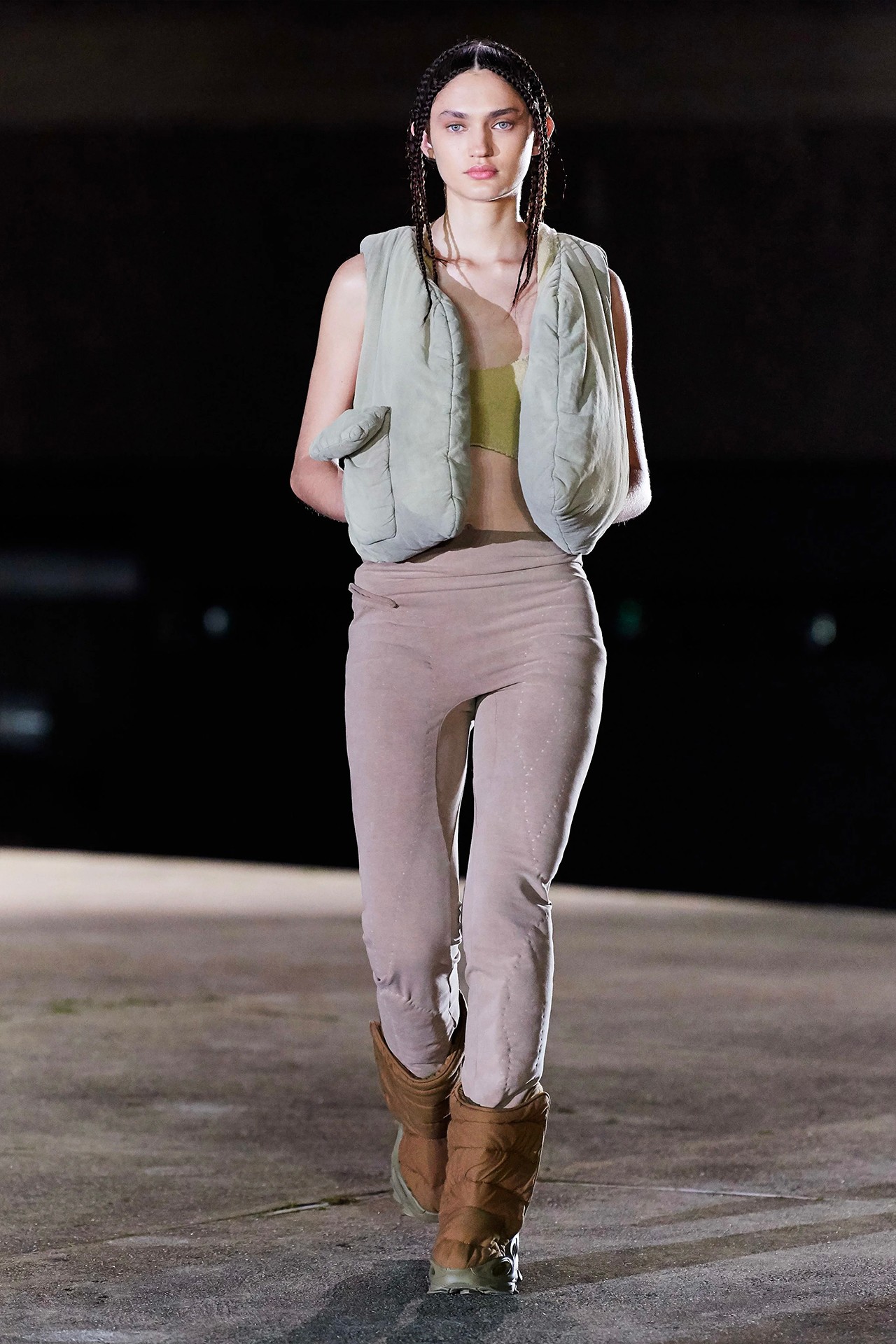 Koleksiyona baktığımızda ise her zamanki Yeezy tarzında soluk tonlar dikkat çekiyor. Toprak tonlarında spor braletlerin yanı sıra zeytin yeşili, gri ve krem gibi pastel renklerde pantolonlar öne çıkan tasarımlar arasında. Puf mont detaylı dış giyimler ise Yeezy rahatlığını yansıtıyor.