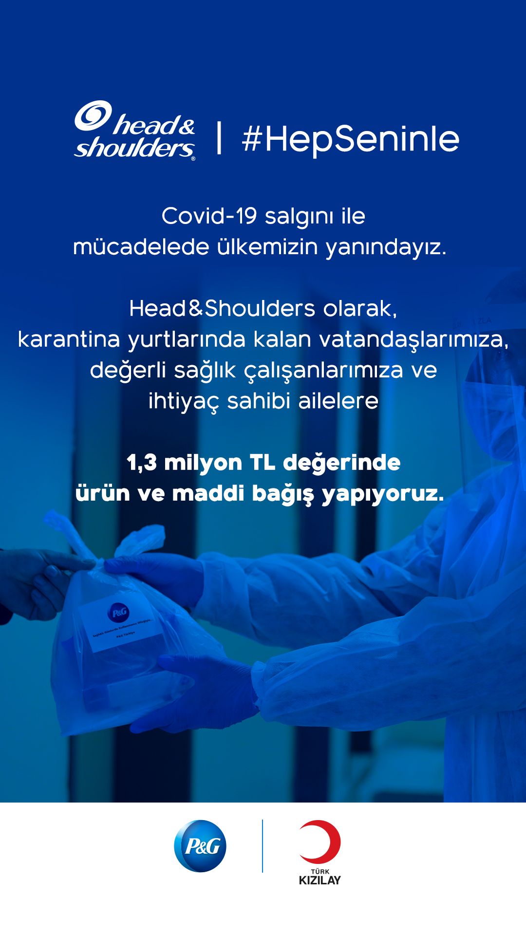Her zaman özgüveni arttırmaya, kafayı ve bedeni ferah tutmaya yönelik projeler üreterek topluma fayda sağlayan Head&Shoulders, Covid-19 salgını mücadelesine destek vermek içingeçtiğimiz Mart ayında #HepSeninle kampanyasını başlatmıştı. Bu kampanyanın ilk adımı olarak toplumun moral ve motivasyonunu yüksek tutmak için @headandshoulderstr Instagram hesabında canlı yayın etkinliklerine devam eden Head&Shoulders, toplam 1.3 milyon TL değerinde ürün ve maddi bağış ile topluma desteğini sürdürüyor.