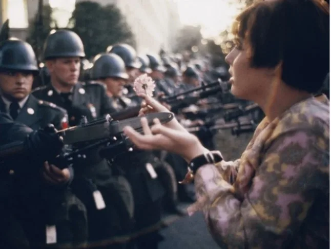 17 yaşındaki Jane Rose Kasmir’in Vietnam Savaşı sırasında askerlere çiçek uzattığı kare!