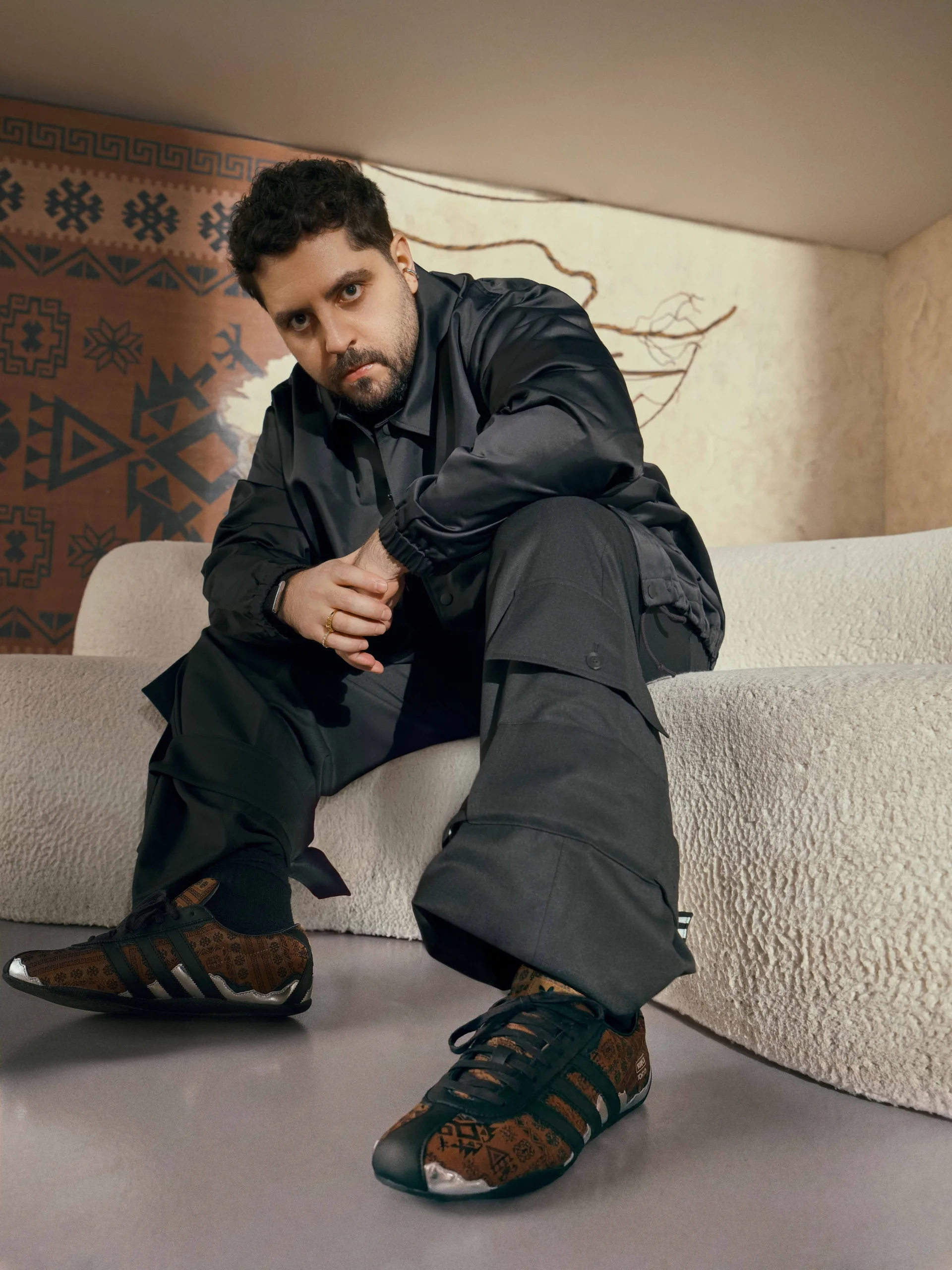 ““SOFT ARMOR” adlı adidas Tokyo sneaker’ı, Dadaş Dedem ve anneannemi onurlandırmak için BENJI imzasıyla tasarladım. Bu tasarım, doğduğum yer olan Neuss’taki Ren Nehri’nin ve bugün yaşadığım Boğaziçi’nin hikayesini anlatıyor. Düsseldorf’taki Frank Gehry binasının ayna gibi yansıması benim için bir metafor: Yansıtmak, birbirimizi anlamaktır. Bu yüzden parlak gümüş detayını empati ve şefkatin bir sembolü olarak kullandım. Tasarımdaki desenler ise bir göç hikayesi taşıyor: Su yolu, misafir işçilerin İstanbul’dan Münih’e yaptığı tren yolculuğunu, hayat ağacı ise köklerimizin yeni bir toprağa tutunuşunu temsil ediyor, akrep nazar benzeri koruyucu kalkan görevi görüyor. Bu sneaker, Alman ve Türk kimliğimin ikiliğini birlikte kucaklıyor.”
