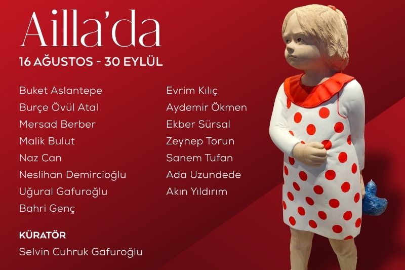 “Ay’ın ve Güneş’in etrafında görülen eşsiz halka”yı temsil eden “Ayla” dan ilham alan küratör Selvin Cuhruk Gafuroğlu’nun sanat adına bir “Ayla” oluşturduğunu düşündüğü sanat eserlerinin seçkisinden doğan “AILLA’DA” sergisi 10 heykeltıraş ve 5 ressamın eserlerine ev sahipliği yapıyor.