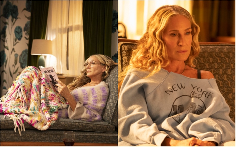 Carrie’nin ev stili ise tam anlamıyla görmek istediğimiz gibi. Yani bizden biri gibi! Bol düşük omuzlu sweatshirtler, dökümlü hırkalar Carrie’nin ev kombinlerinde kurtarıcısı oluyor.
