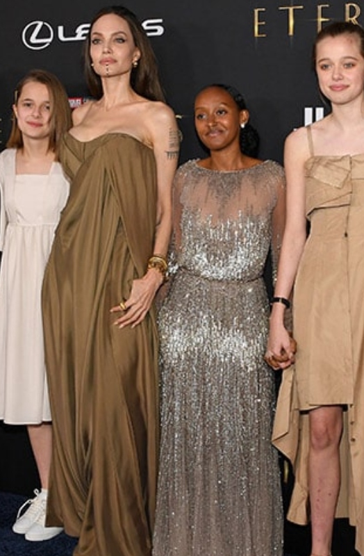 Angelina Jolie’nin kızı Zahara, The Eternals galası için annesinin 2014 Oscar Ödülleri’nde giydiği elbise ile karşımızda.