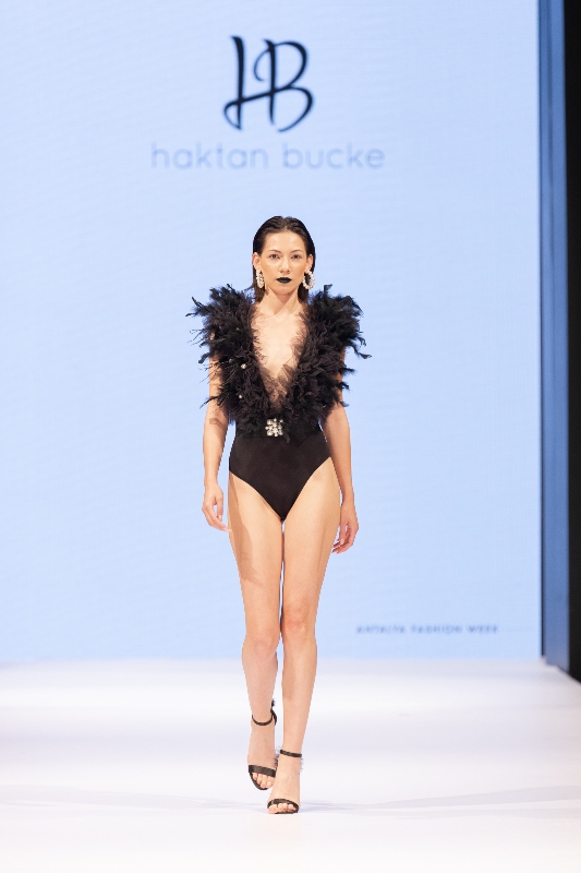 Açılış defilesini İstanbullu moda tasarımcısı Haktan Bucke, 2022-2023 Sonbahar-Kış koleksiyonu “Black Swan/ Siyah Kuğu” ile gerçekleştirdi. Koleksiyonun adını taşıyan Siyah Kuğu, bir metafor. Karşılığı ise olasılıksız görünenin etkisi… Hayatta karşılaştığımız belirsiz durumları, her şeyden çok emin olma hallerimizi ve görmediğimiz şeylere inanmama eğilimlerimizi anlatıyor. Bütün kuğular beyaz değil midir? Öyle bir an gelir ki, deneyimlerden çıkan sonuçlara değil; aniden gözümüzün önünde oluşan bir gerçeğe bakarız. Ve “Bunu tahmin etmemiştim!” deriz. İşte yeni tasarımlarını hazırlarken bu sürprizlerden ilham alan Bucke; “Black Swan” koleksiyonunda gizemin, gücün ve zarafetin rengi siyahı tercih ediyor. Asimetrik kesimleri, derin yırtmaçlarla feminen görünümün tüm cazibeli kıvrımlarını cesurca ortaya koyan tasarımcı; vurgulamak istediği detaylarda ise dişi gücün simgesi inciye yer veriyor.
