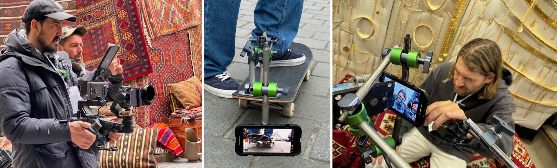 Sinan: Bu, ekipteki herkes için yeni bir deneyimdi ve sürekli olarak iPhone 14 Pro’ya uygun benzersiz yaratıcı çözümler tasarlıyorduk. Olağanüstü dar yerlere girebilmek ve ana kaykaycımız Dougie’ye yakınlaşmak için telefona özel ev yapımı ekipmanlar ürettik. Bu çekimlere müdahale etmek, iPhone’da normal bir kameraya göre çok daha kolaydı ve bu sayede, perspektifler ve geçişlerle oynayabiliyorduk. Kaykay tekerleğindeki mücevherin makro çekiminde, zoom yapılan mücevherin vitrindeki mücevherlere dönüşmesinde olduğu gibi. Kamerada üç lens var. Bunun anlamı çekim sırasında aksiyonun tamamını kaydediyor olmamızdı. Bu nedenle kamera hareket ederken arka planda ne olduğuna daha fazla dikkat etmemiz gerekiyordu. Bu derinlik nedeniyle, prodüksiyonun tamamı her sahnede inanılmaz derecede detaylı olmak zorundaydı. Telefonun özelliklerini çok sayıda deneme yanılmayla öğrendik. Ancak bu süreç, bana film yapımının, tüm teknolojinin yönetmenin ellerinde olduğu ve olağanüstü şeyler yapmak için sadece biraz ustalığa ihtiyaç duyduğunuz ilk dönemini hatırlattı.