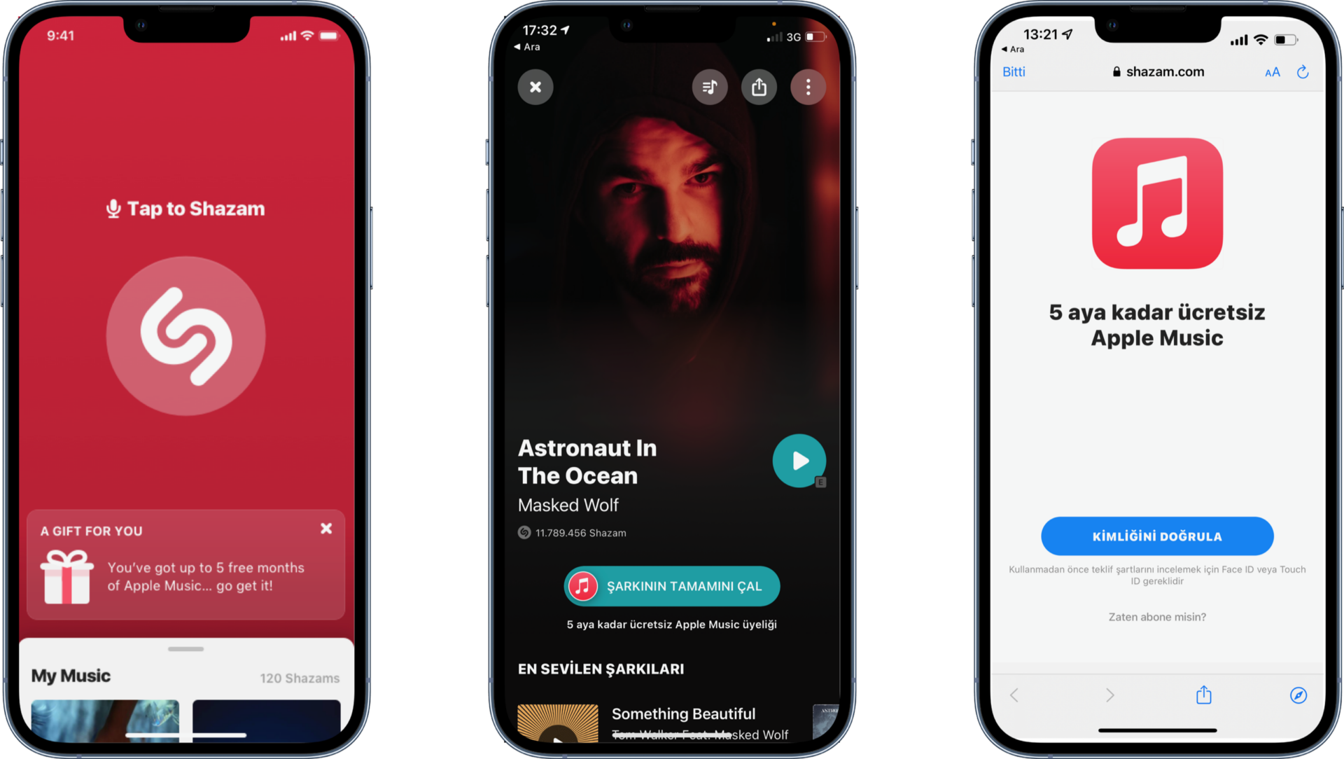 Hala Apple Music üyesi değilseniz Shazam’ladığınız bir parçayla beraber 5 aya kadar ücretsiz Apple Music üyeliği hemen başlatabiliyorsunuz.